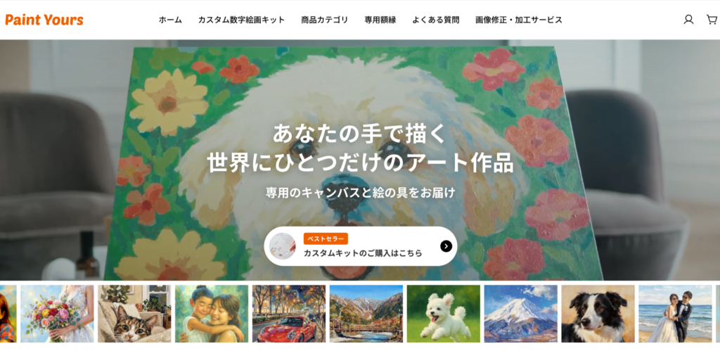 お持ちの写真をアップロードするだけで、専用のキャンバスと絵の具・絵筆のセットが届くんですよ。